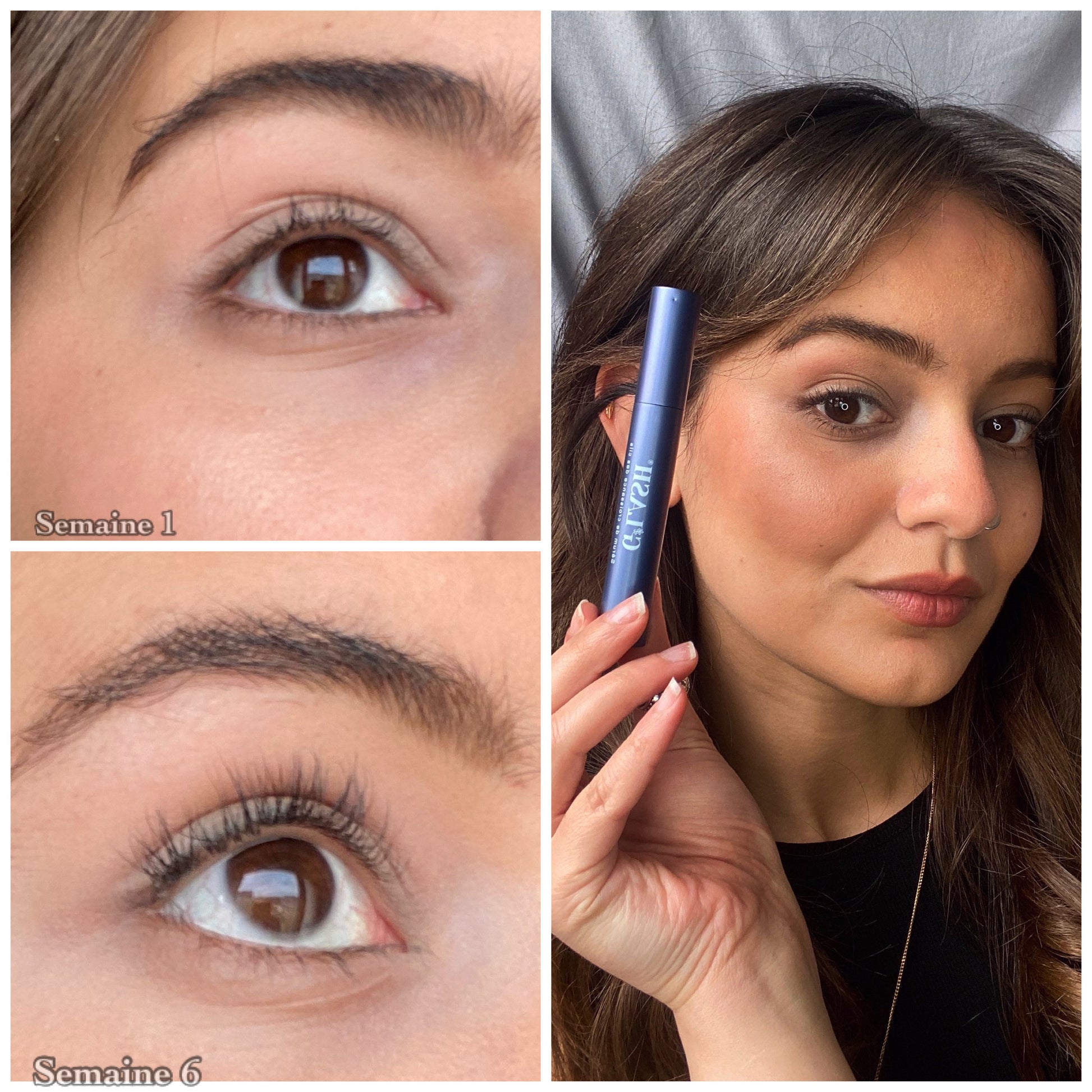 « Cils arrachés aprè des extensions de cils. Après 5 semaines d’utilisation régulière de GLASH, je constate une vraie amélioration : les cils se voient davantage, sont plus foncés et mieux fournis en coin externe. Le packaging est chouette, l’application rapide : parfait pour ma routine minimaliste. »